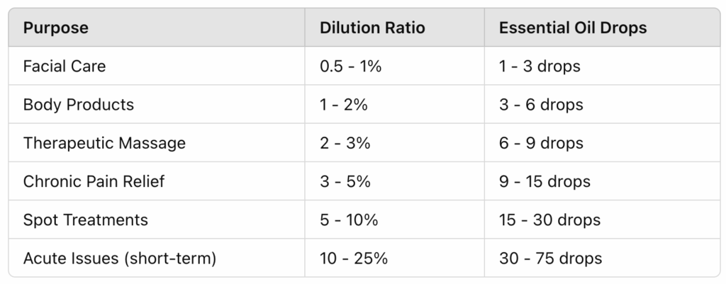✔ Standard Dilution Ratios (per 10mL of Carrier Oil)