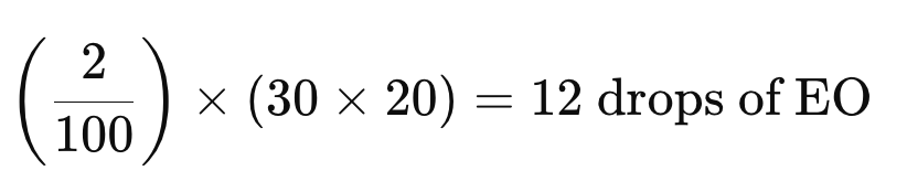 Essential oil dilutions are typically calculated using drops per milliliter of carrier oil. The general rule of thumb is:
